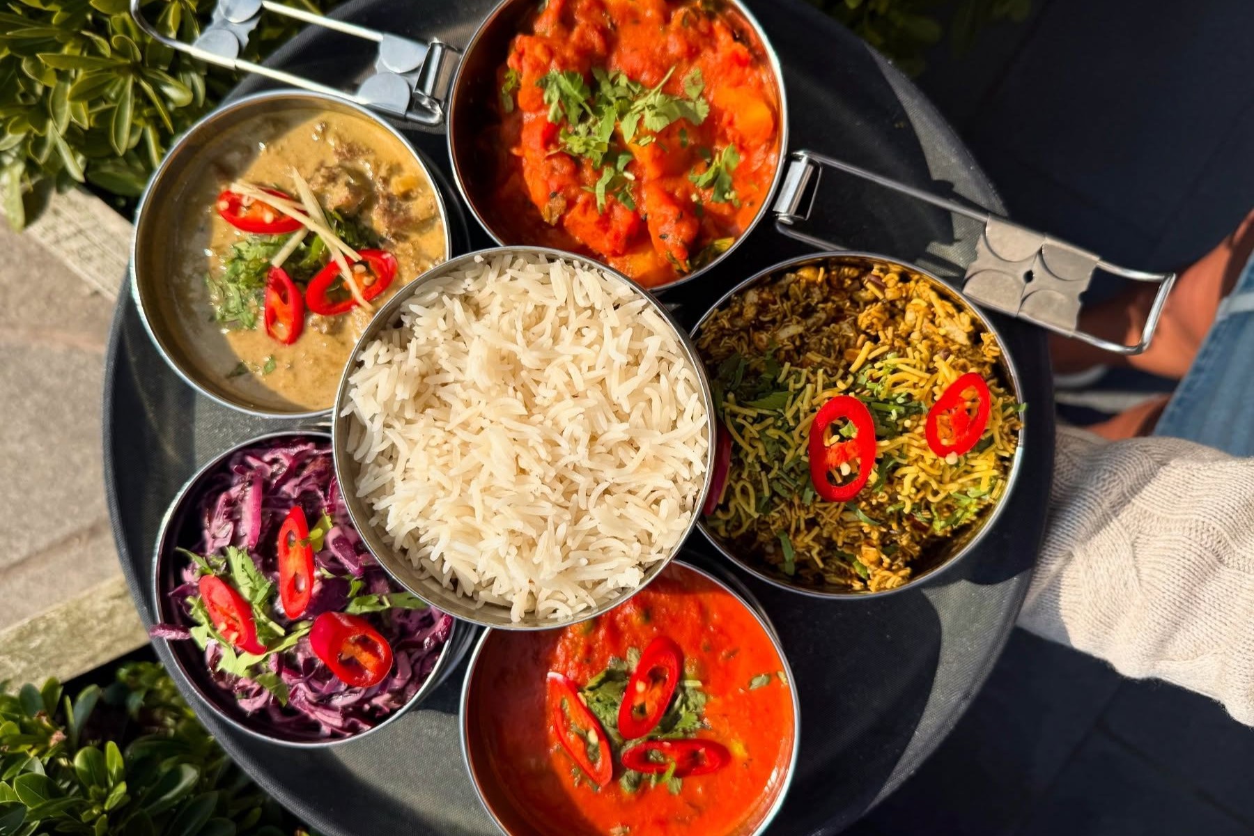 Anche se è un ristorante, l'esperienza culinaria è unica e si ispira al modo in cui gli indiani mangiano a casa e per strada. L'attenzione è tutta sui piccoli piatti, le spezie autentiche, le erbe fresche e i sapori piccanti che riflettono il loro cibo di strada genuino e vivace. Sedie a dondolo, lanterne sospese e lucine scintillanti contribuiscono a creare l'atmosfera accogliente e confortevole del ristorante.