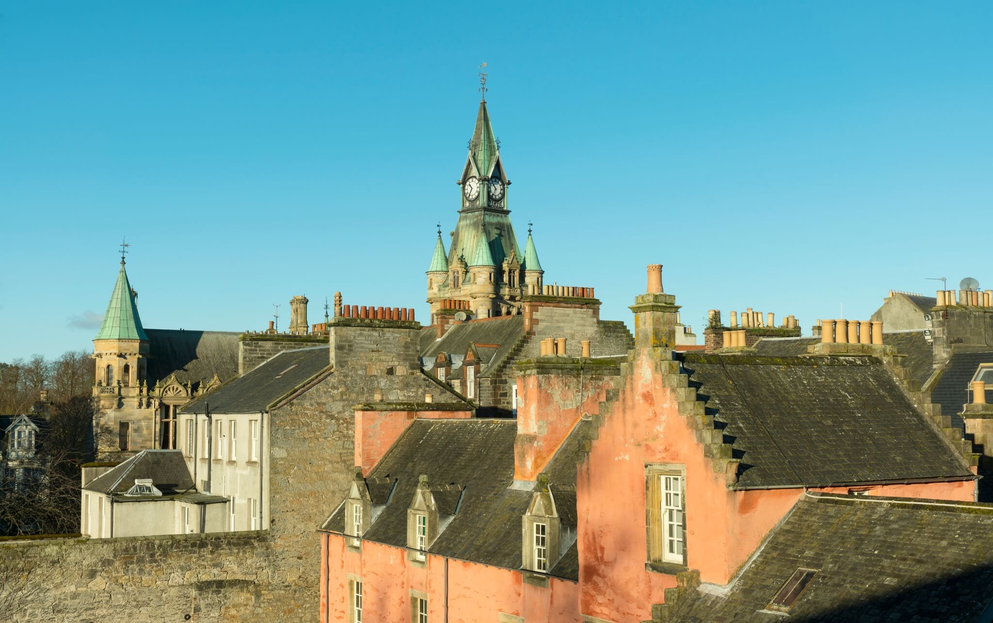 16th century Abbot House is instantly recognisable by its colour and is known fondly as the ‘pink hoose’ by locals.