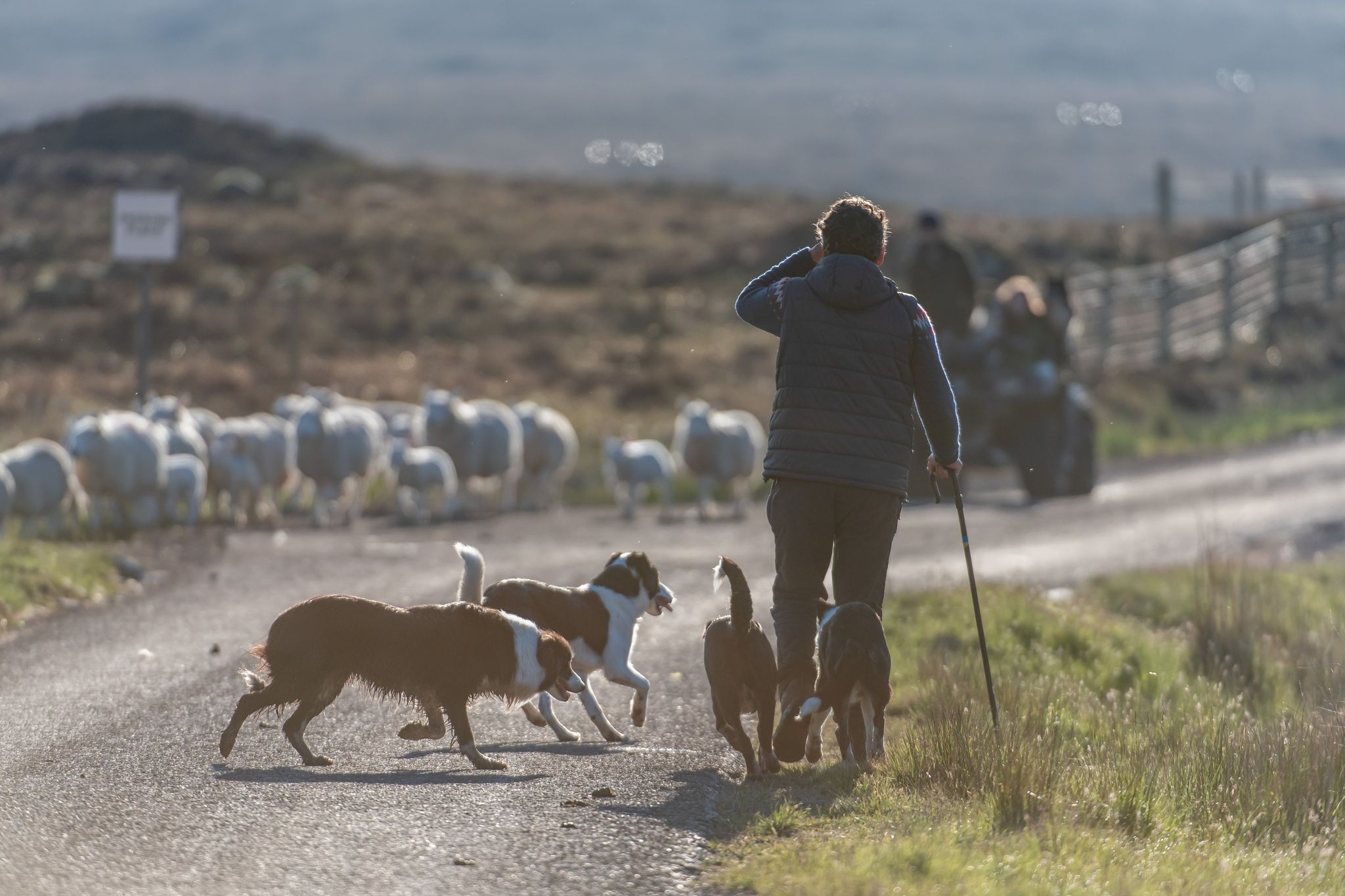 A farmer and his sheep dogs